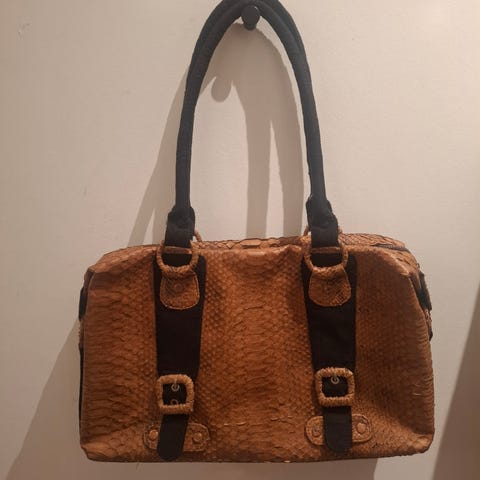 Spesiell slangeskinnsveske innkjøpt i Portugal for flere år siden, merke S.T.L.da med matchende lommebok. Var dyr da jeg kjøpte den!