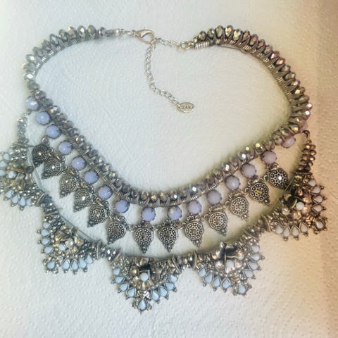 Selger et nydelig Cecilie Melli "Nefertiti Montana" smykke med nude og kongeblå stener. Smykket er helt nytt og aldri blitt brukt, lappen henger fortsatt på så dette kan benyttes som gave.