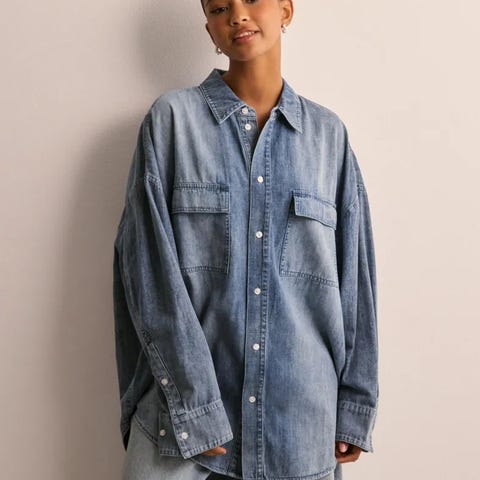 Ubrukt, NMERIK OVERSIZE Denim SHIRT LT BLUE fra Noisy May Light Blue