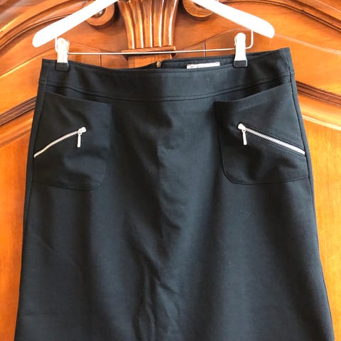 • lurelommer på sidene foran ~ glidelås bak ~ splitt nederst bak ~ "snor" fra sidene foran og rundt hoftene - festet i knapp på sidene bak