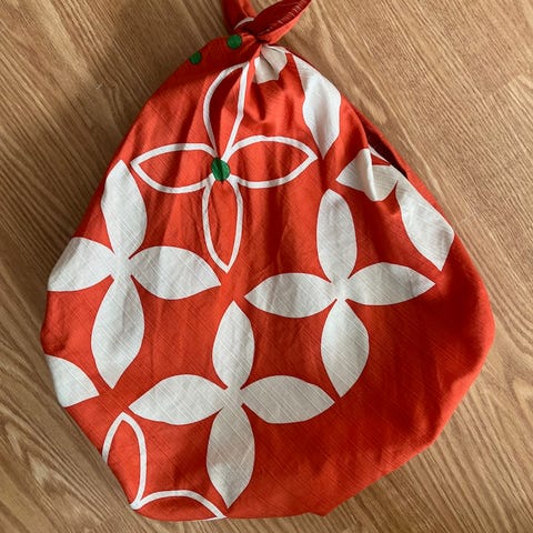 Selger en liten rød kinesisk veske for 250 kr.