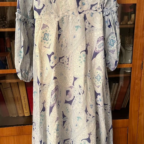 NY. Søt GRÅBLÅ mønstret kjøle. BLÅGRÅ. Med underkjole.