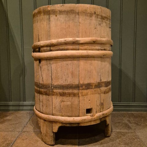 Brukes for tiden ute som bord, med glassplate på toppen.