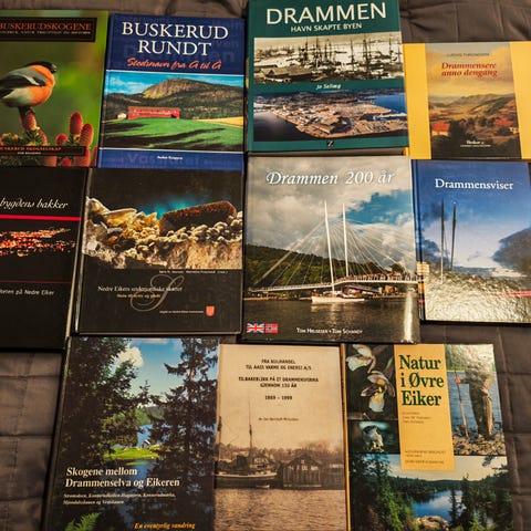 Flott bok og kjekk å ha i disse tider da alle er på tur i nærområdet. Skogene mellom Drammenselva og Eikeren. Som ny. Meget ettertraket bok. Drammen, Nedre Eiker, Mjøndalen, Skoger