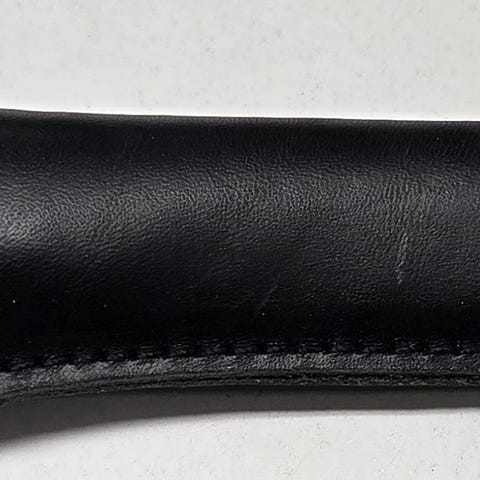 Helt fin i skinn og strikket nederst.