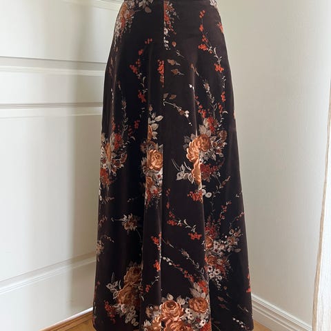 Livvidde 80. Lengde 92cm. Lilla. Vakker farge. Velur/fløyel. Langt. Glidelås og splitt bak. Vaskbart. Ubrukt. Hengt i klesskap. Kun prøvd. Kjøpt rundt 2000. ?Kjøper betaler porto.