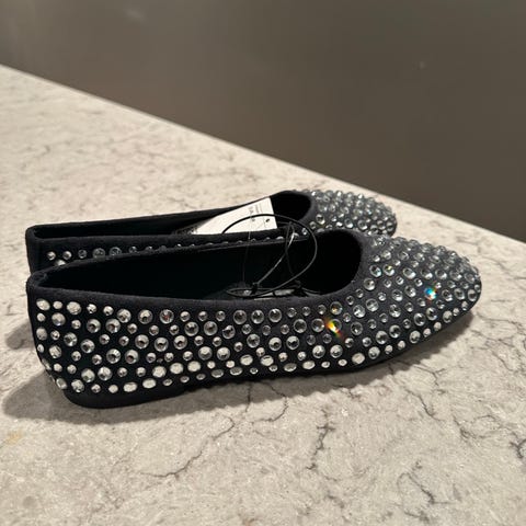 Selger mine ubrukte ballerinasko. De er rosa og sorte. Str. 38. Merkelappen henger fortsatt på. Kjøpt på H&M på nett. Mulig de er liten 38, men de litt store til meg som bruker 37 og noen ganger 36. Kan lage egen avtale med kjøper. Sender også som brevpost.
