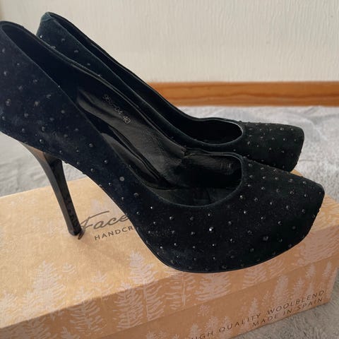 Nydelige pumps fra Bianco selges da jeg synes de er litt for høye. Brukt én gang innendørs. Ingen skader. Paljetter på helen. Størrelse 36. Ny pris kr 599,-.