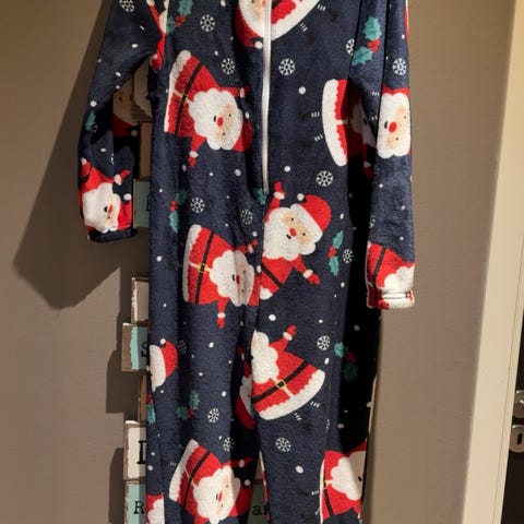 Rød nisse drakt og 3 stk nisse luer og Blå nisse hals og Blå nisse lue selges. Pris og str. står under bildene.