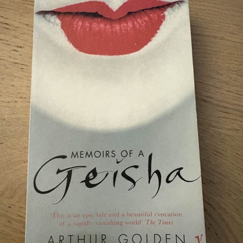 Arthur Golden: Geisha, J. W. Cappelens Forlag, Oslo 2000. Med omslag. Navnetrekk på forsatsblad - for øvrig en pen bok.