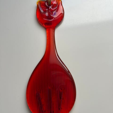 Blå katt i glass fra Toves glasskunst, Troms Figuren er 20 cm høy.