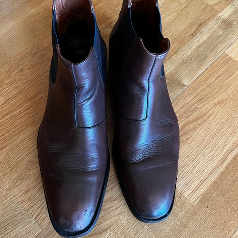 Engelske sko størrelse 9/43. Sort og burgunder lær og gummisåle. Ubetydelig brukt. Kjøpt fra Charles Tyrwhitt, London.