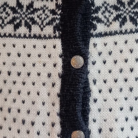 Barne-Kofte i hvit og sort med 5 par metall hekter