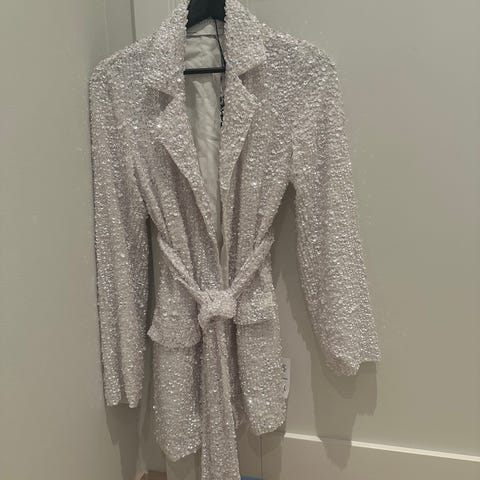 Nydelig skreddersydd kåpe vurderes solgt. Sydd på mål etter bilde av en Chanel kåpe. Passer XS/S. Har kun hengt i garderoben. Kan sendes mot Vipps/porto på 129,-.