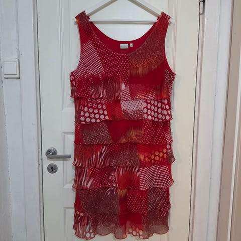 Nydelig Tunika av merket C´Fait Pour Vous/Paris i str 40, (evt brukes av str 42), med glidelås i siden og underkjole. Tunikaen er er flotte farger, fine detaljer og i et silkeaktig stoff. Er ikke brukt.