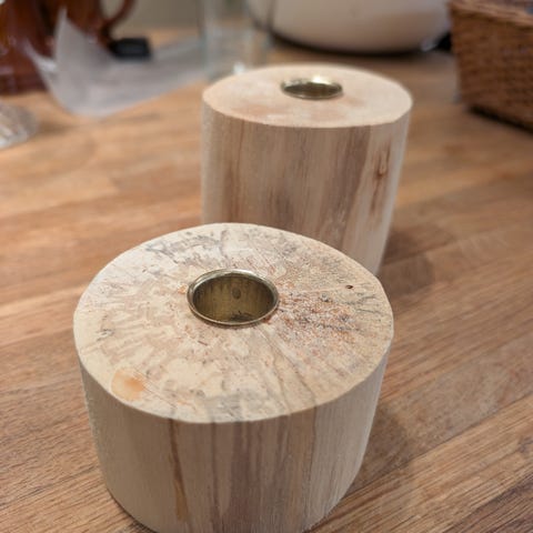 Veggstaker i tre med malte blomster. Passer utmerket på en hytte.