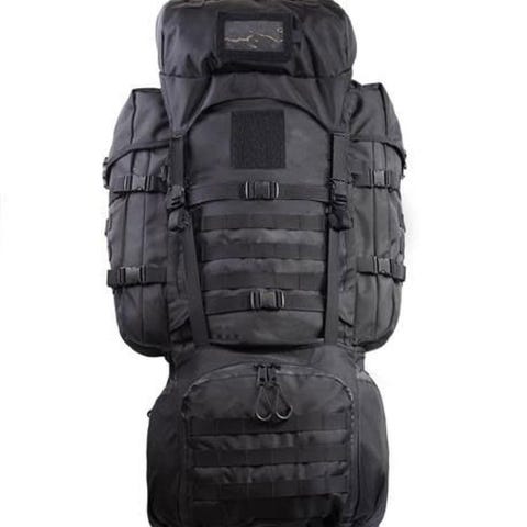 Laget av høy kvalitets belagt 600D polyester, er denne ryggsekken solid og vannavstøtende. Ryggsekken har to brede skulderremmer og en justerbar midjerem med en spenne. Den har en stor kapasitet på 75 liter, slik at du kan pakke alt du trenger til utendørs opplevelser. Den store hovedlommen kan brukes til å lagre store elementer, og dens snørelukking og spenne sørger for at dine eiendeler oppbevares trygt. Ved behov kan hovedlommen bli delt for å organisere dine eiendeler enda bedre. Det er også en lomme med lokk, to sidelommer med glidelås, to sidelommer i netting, og tre frontlommer med glidelås, noe som gir ekstra plass slik at du kan trygt og praktiskt oppbevare tingene du trenger, slik som kniver, glass og lamper.