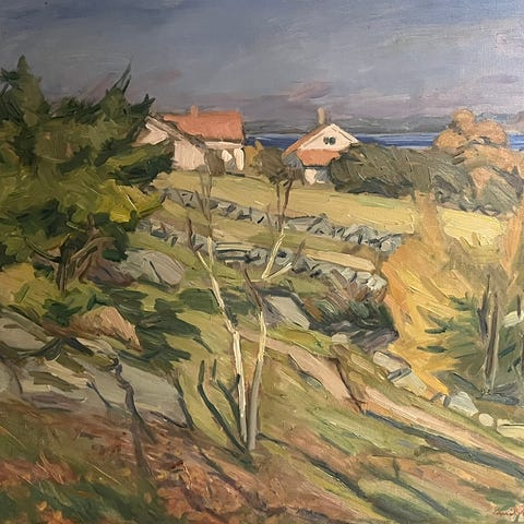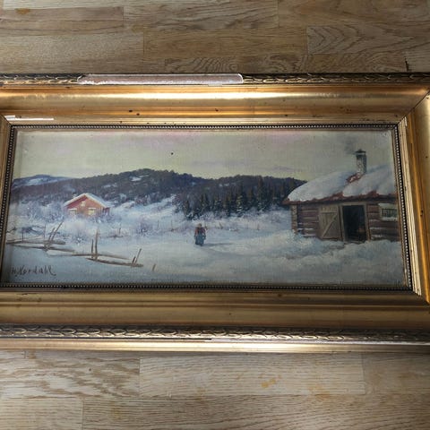 Flott maleri, landskap, malt av R. Nordahl i 1944.