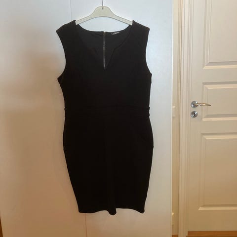 Ny kjole fra Fransa, knelang kjole, svart m sølvsømmer i front.