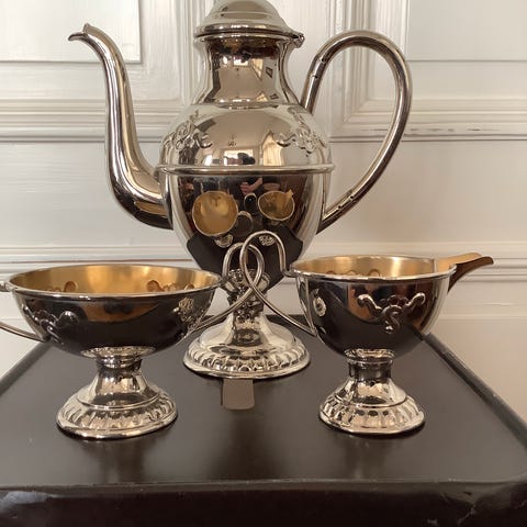 Art deco design i norsk hammertinn fra Savo med slangedecor. Håndlaget fra 1950-60 tallet. Merket med Savo, Gullsmed tinn, B150 og 151.