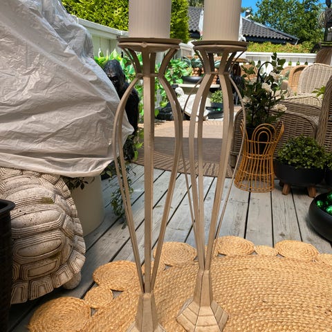 2 flotte lysestaker i shabby chic stil selges samlet. H 66. B: 37.