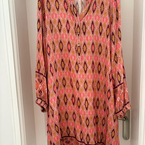 Helt ny knelang tunika i lett trikot. Den er v-ringet og har knapping foran. Lange ermer. Avrundet nederst med splitt i sidene og et noe lengre bakstykke.