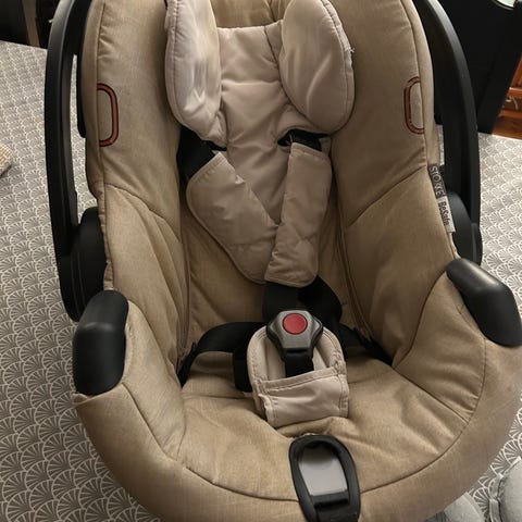 Type Graco, 0-13 kg. Holder festes i bilsete, kan ta av og bære med stolen i butikken, inn, på besøk etc. Fargen er i gråtoner.