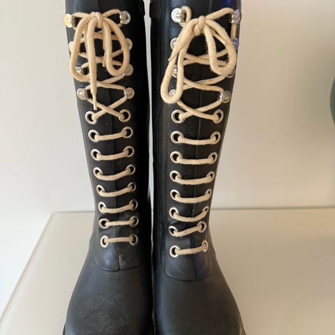 Hunterstøvler i størrelse 36. Noe bruksmerker, men lite synlig. Ca 40 cm høye inkludert hæl.