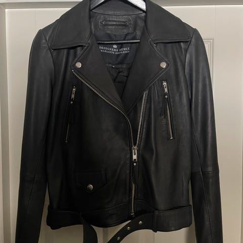 Skinnjakke fra Designers Remix/Charlotte Eskildsen i størrelse 36. Kjøpt på Høyer for 4500 kr, brukt 1 gang. Utrolig mykt skinn, veldig behagelig å ha på. Blir dessverre aldri brukt.