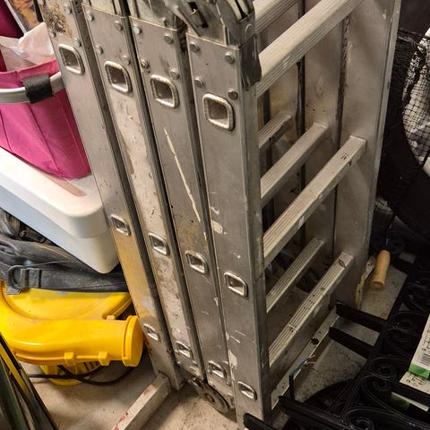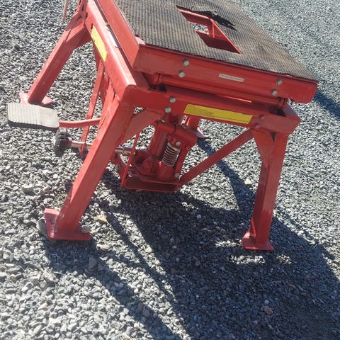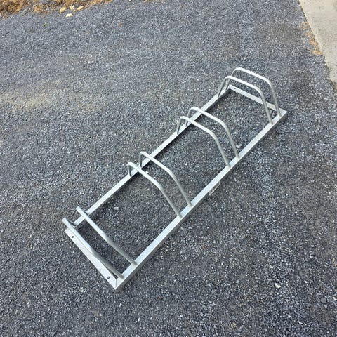 Stativ i aluminium som har vært montert i henger for frakt av motorsykler.