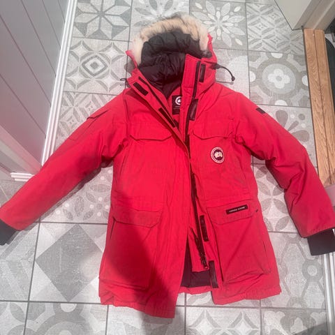 Modellen er opprinnelig uten pelskrage. Den er sydd på i etterkant fra en annen CG jakke, og er ekte.