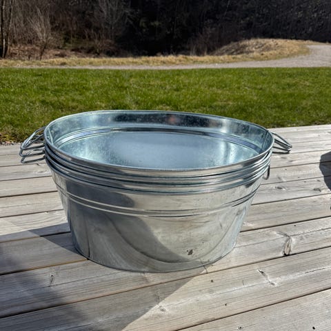 Stor flott julerød sinkbalje til salgs.