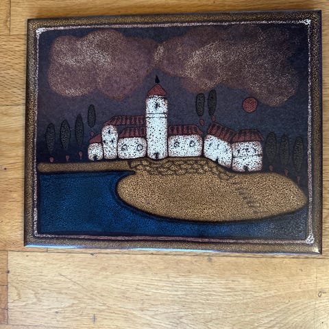 Keramikk relieff fra Bergen. ? 13.5*21cm .Kjøper betaler porto.