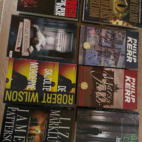 Diverse innbundet krim- og trillerbøker