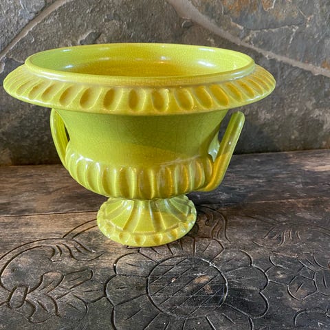 Vintage Green Stoneware Handled Basket Vase