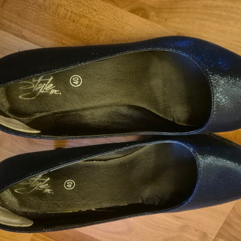 Høyhælte Sort semsket sko med pynt på. Pent brukt.