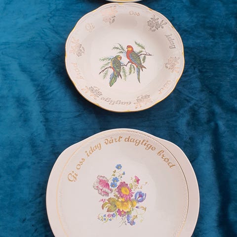 Figgjo Fat med hvit porselen rødt og sort mønster størrelse 51-15cm.