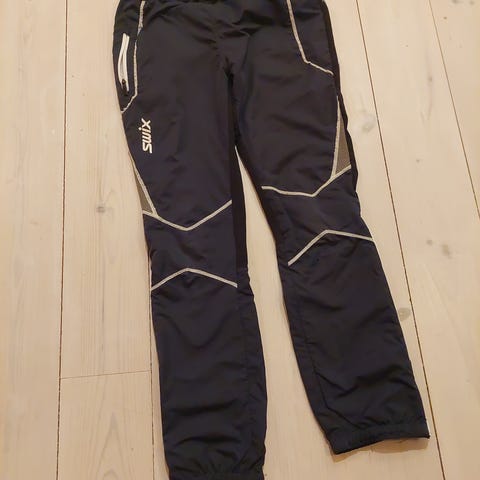 Swix ski-/treningsbukse for dame i størrelse M. Buksen er mørk blå og har elastisk linning med snøring. Den har glidelås nederst på bena og glidelåslomme i siden. Egner seg til trening og fritidsbruk. Vind- og vannavvisende stoff.