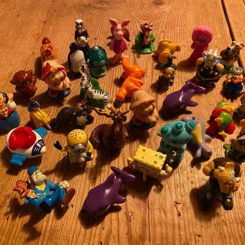 Stor samling med mange forskjellige tegneseriefigurer, biler, skilt, ++ selges.
