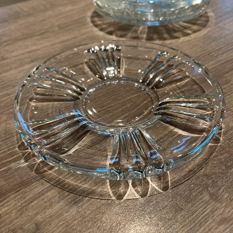 Har ett glass og glasstallerkener i samme farge, Det blir ikke brukt , det er skadefritt. .