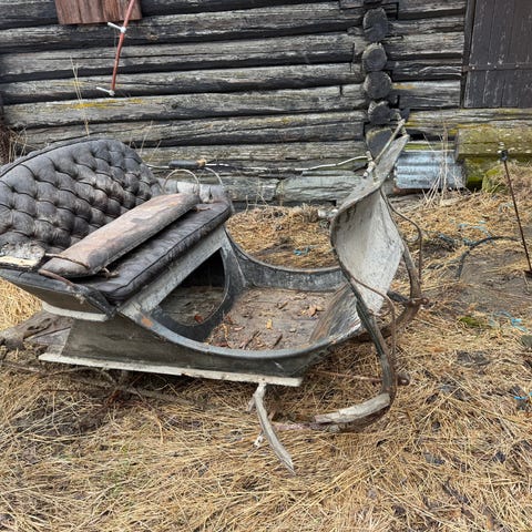 Hestetrille i bra stand(litt støvete bare) selges. Den er lagret inne på fast gulv, så hjula er fine. Er med to fine lykter.