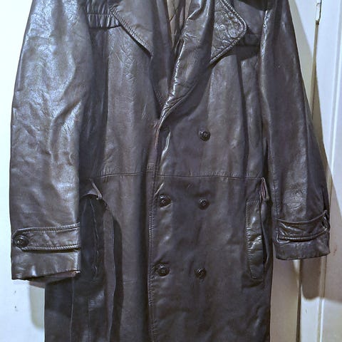 Skinnfrakk, retro, vintage, veteran, ordonansefrakk, veteranbil, kjørefrakk, mc, motorsykkel-frakk, motorsykkel-tøy.