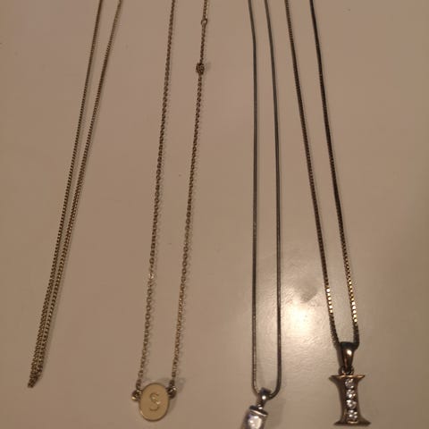 3 stk smykker, med 3 stk kjeder 40cm langt + 10 cm + 1 par øredobber, nok 100 per stk.