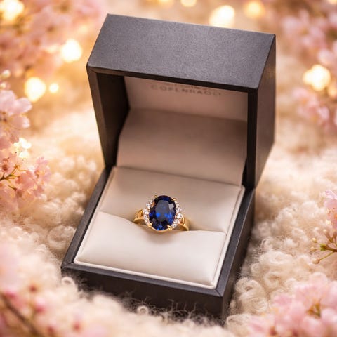Rosa naturlig krystallring med stor krystall, Den er belagt med gold