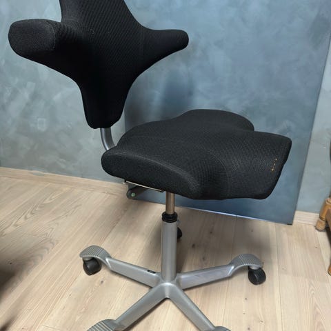 Håg Capisco kontorstol i svart. Stolen har et ergonomisk design med justerbar høyde og ryggstøtte for optimal komfort. Egnet for kontorbruk.