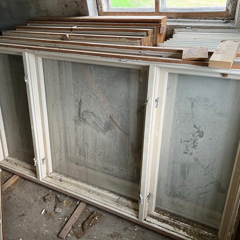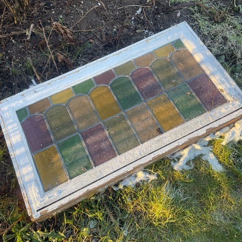 Blyglassvindu som har vært brukt ved siden av ytterdør