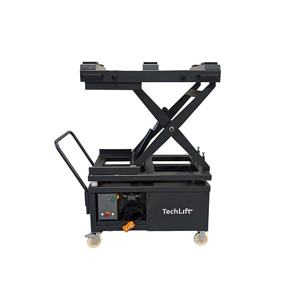 TechLift 4-søyler løftebukk. Hydraulisk firesøyler løftebukk. Meget stiv konstruksjon som gjør at den kan stå løst på gulv uten bolting. Passer derfor godt som parkeringsløfter, da den enkelt kan flyttes. Men den kan også boltes fast, og brukes som vanlig firesøyler løftebukk. Automatisk dobbel sikkerhetslås på hver søyle med individuell justering. Denne har låsingen inni søylen, som gjør den mye mindre utsatt for klemskade. Leveres komplett med hjulsett, dryppkar og dreneringskar i stål.