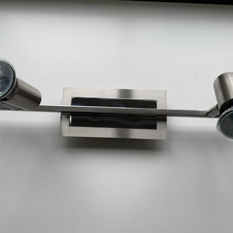 4 stk 2-armede spotlamper, leddet i sokkelenden og i lampeenden. Rustfritt stål (matt).