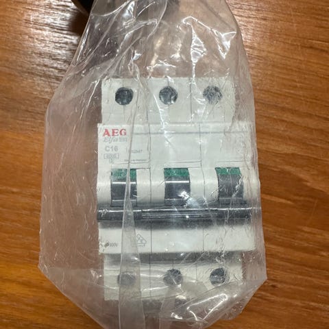 1 stk B16A 30mA kr. 200, 1 stk C16A uten kr.50 og 2 stk AEG 63A 2p 30mA jordfeilbrytere kr 300 pr.stk.