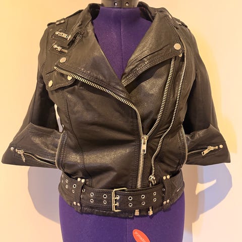 Jakke i ekte skinn fra Jofama by Kenza i størrelse 38. Svært lite brukt og har ingen skader. Fremstår som ny.